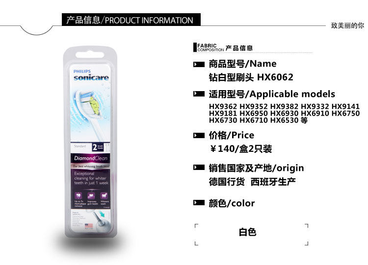 Philips beauty version original fit HX6063 brushed head HX9382 HX9332 HX9332 HX9350 HX9350 and so on