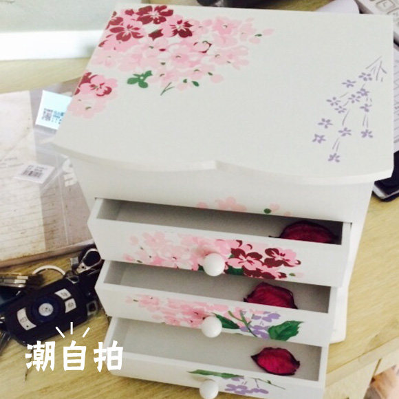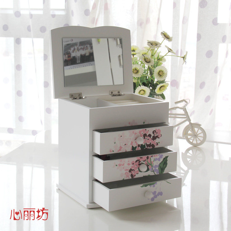 Wooden jewelry storage box Princess cute Korean version wooden multi-layer drawer little girl girl heart hair accessories storage box