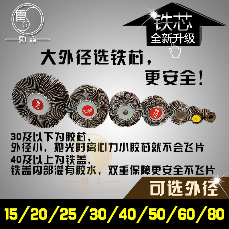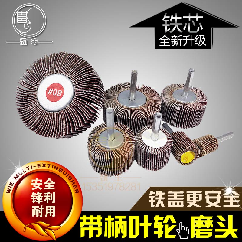 16-80 iron cover cylindrical with shank impeller with shank leaf wheel abrasive cloth grinding head polished impeller rubber core grinding head polished wheel-Taobao