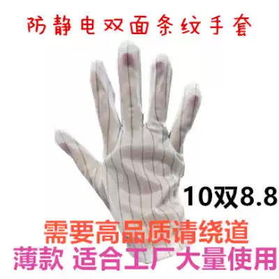 Anti-static double-sided stripe gloves dust-free plastic non-slip white work gloves thin breathable sweat cotton gloves