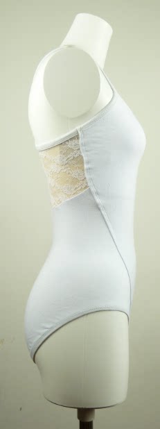 Professional adult female ballet dancer harness back lace workwear to suit white black performance dress