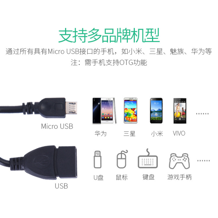 OTG Line data line suitable for Xiaomi Samsung VIVO One plus MicroUSB straight head to pick up mouse U disc line