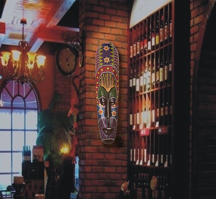 Thai solid wood carving stippling mask African totem decoration living room wall hanging wall decoration bar club retro nostalgia