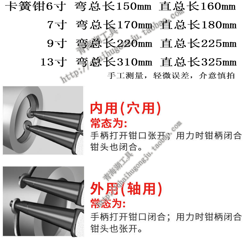 Qinghai Lake tools snap spring pliers C-type buckle pliers 7 inch outer bend inner elbow outer straight inner straight head multi-function snap ring spring