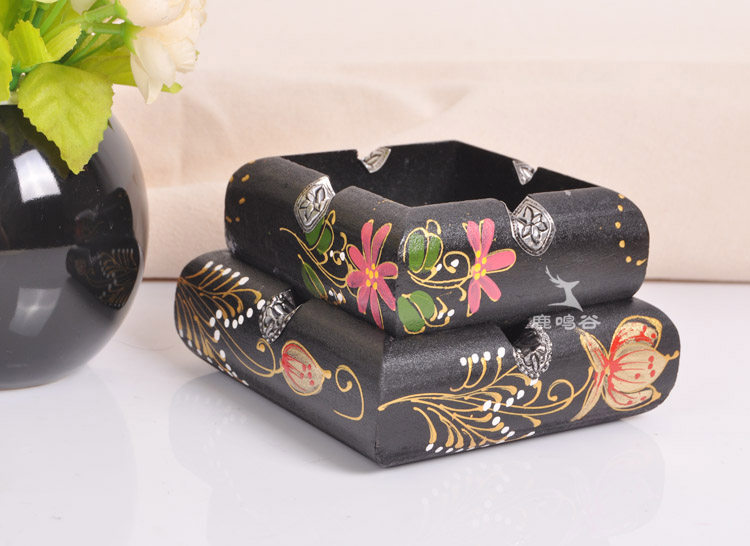 Thailand Painted Square Ashtray Decorative Ashtray Southeast Asian Style Travel Gifts Home Decor
