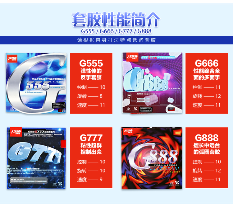 DHS Red Shuangxi G666 555 G777 888 Table tennis rubber racket Anti-rubber cover rubber