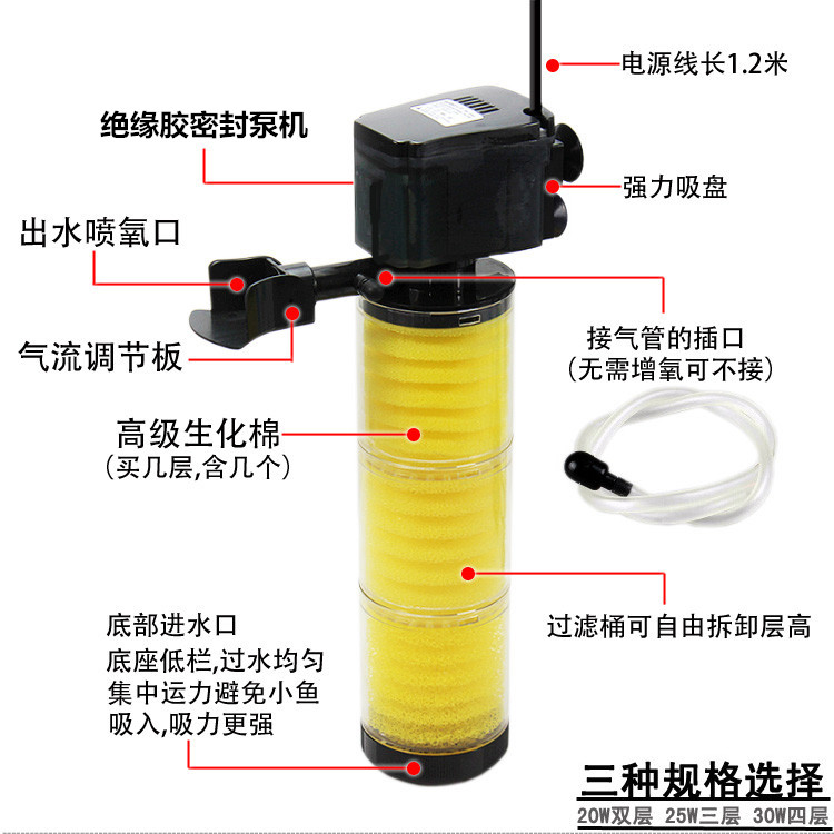 Single Buy 3300A Double layer 20W Single Buy 3300B Three layers 25W Single Buy 3300C Four layers 30W Double layer 20W Filter material Digestive Bacteria 100 Triple 25W