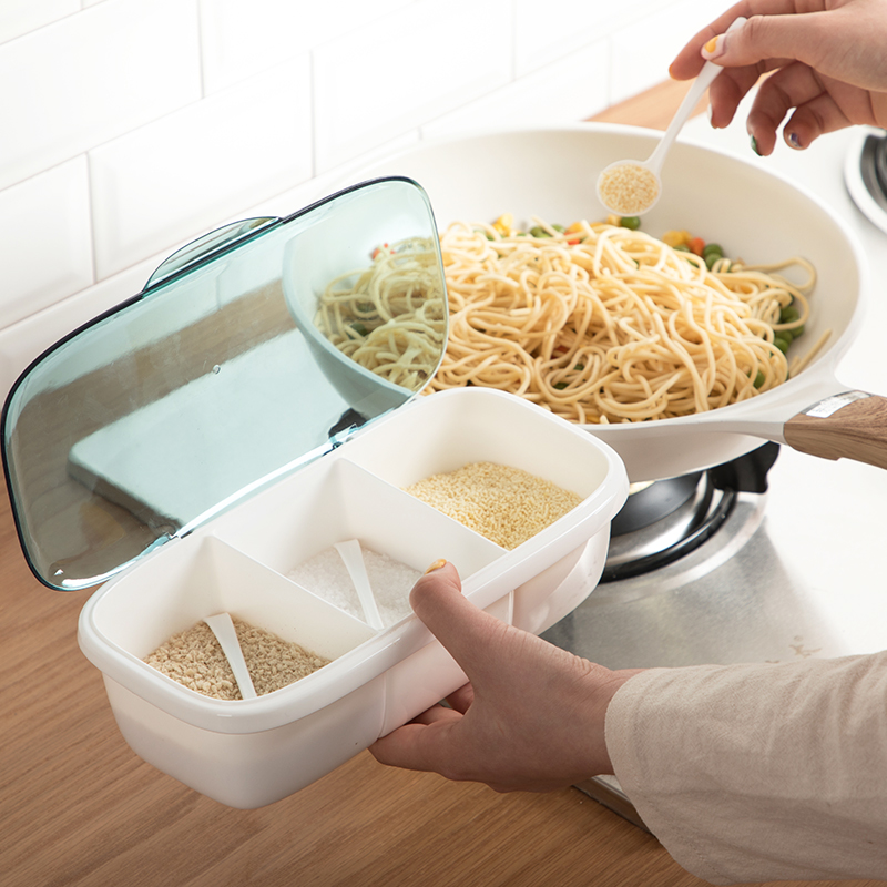 tea flower home plastic partitioned seasoning box integrated multi grid kitchen with lid seasoning seasoning box salt can seasoning can