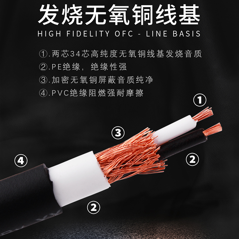 Fever audio line high-purity oxygen-free copper anti-low noise microphone line HiFi audio line audio signal line loose line