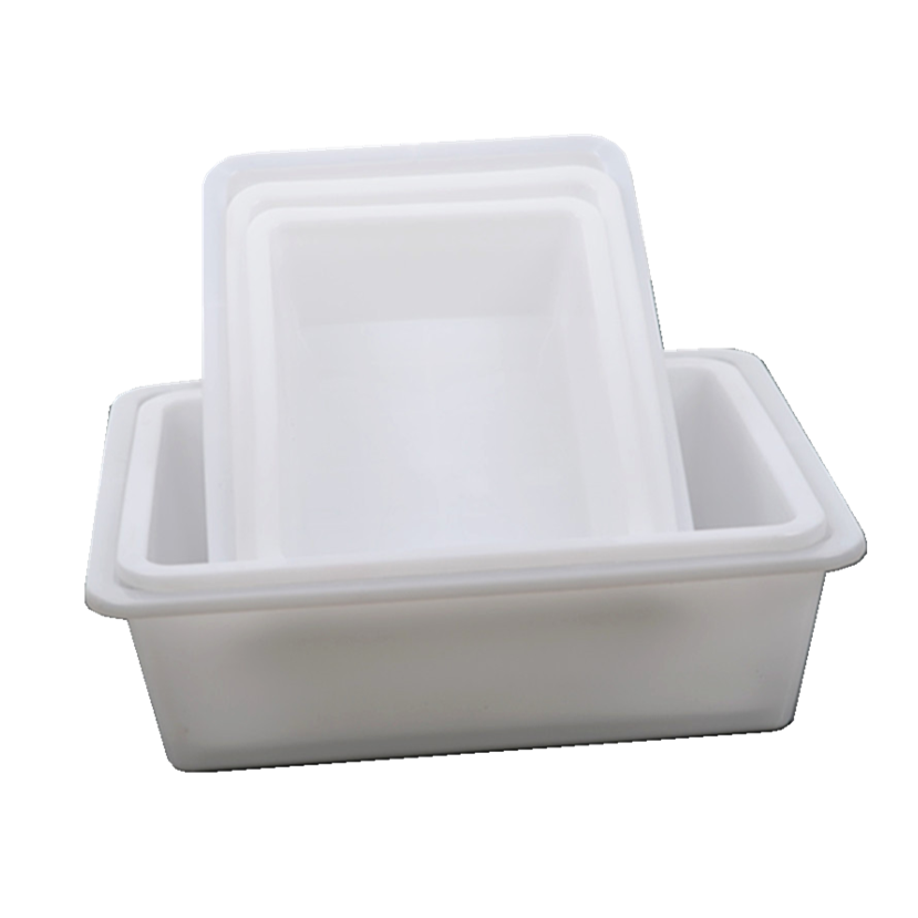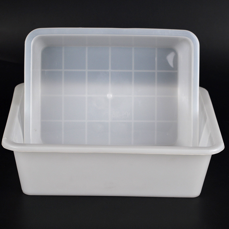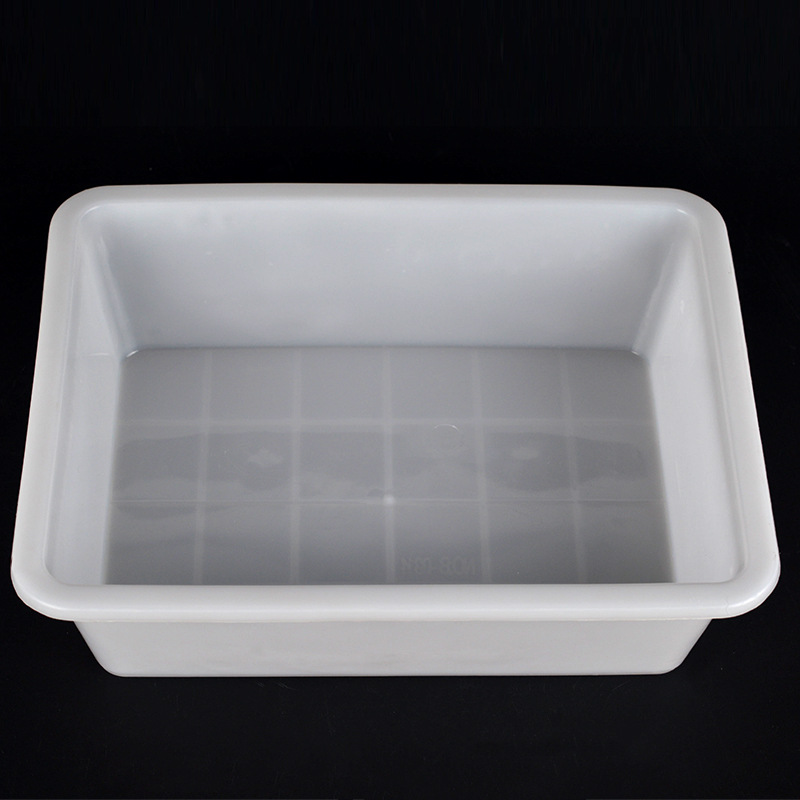 White rectangular unbroken plastic basin receives coverless and finished box square plastic plastic disk food storage box White square basin