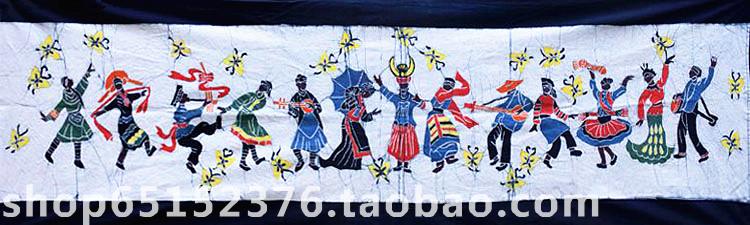 Batik painting Guizhou Miao batik national characteristics batik decorative wall hanging Wuniu figure 145*40CM