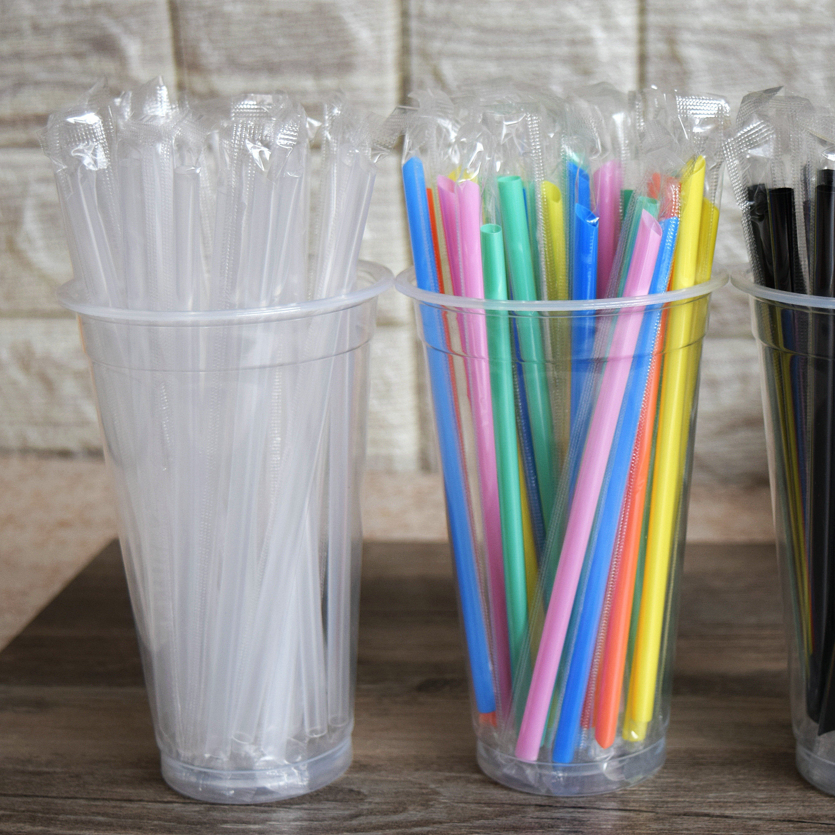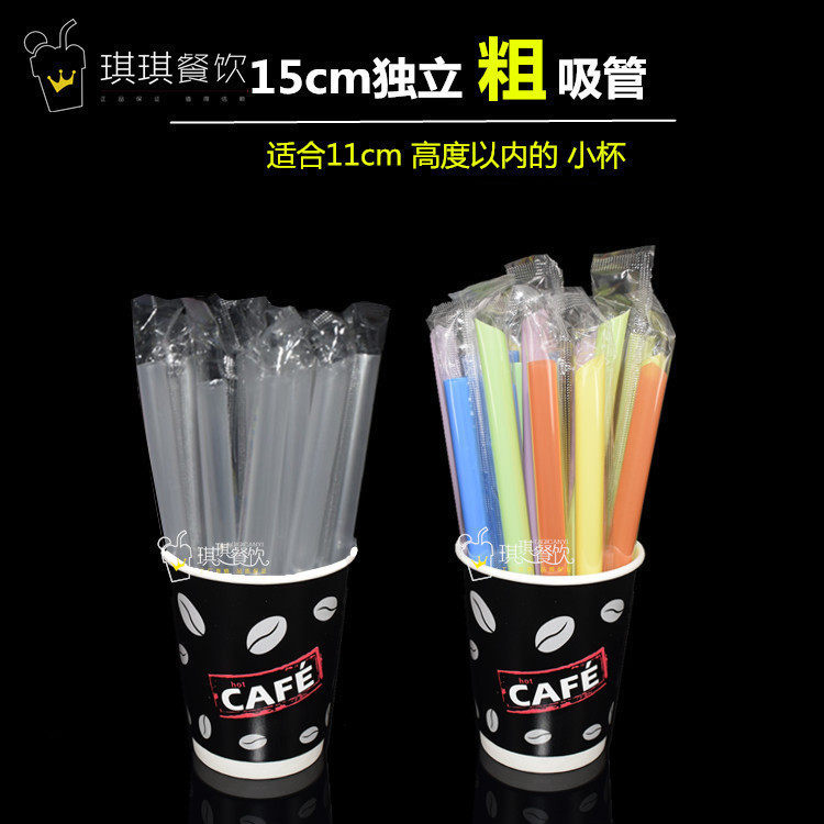 Disposable plastic milk tea straw 15cm independent single crude soybean milk beverage fine color transparent black 2 pieces