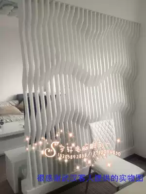 New modern shape three-dimensional sense wavy partition carved board background wall through flower board custom W510