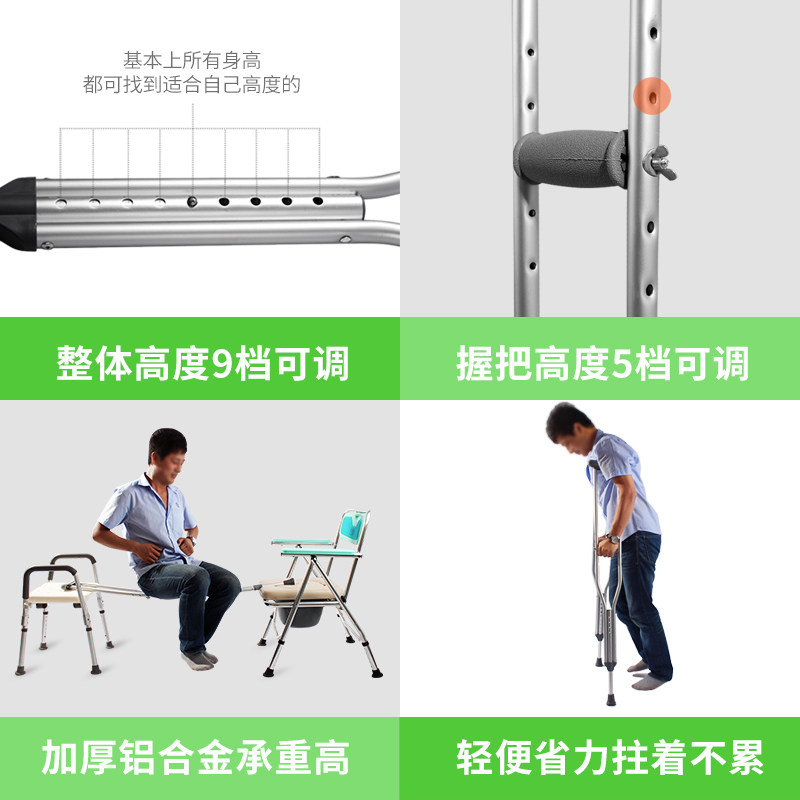 Yad Aluminum Alloy Underarm Abduction Double-Medical Walking Stick Anti Slip Flex Flex Height Adjustable Single Inflective Walker