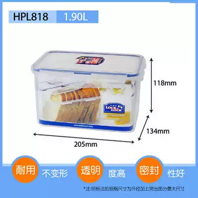 Lock and lock rectangular preservation box Toast bread box Sealed storage box HPL818 1 9 3 9L