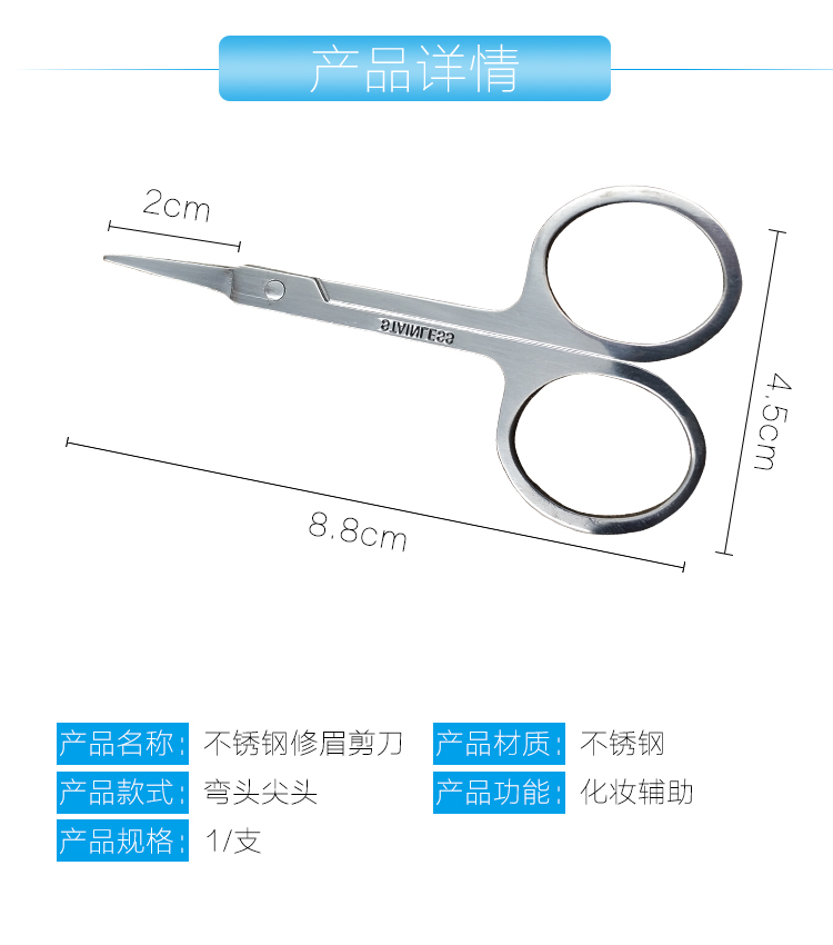Curved scissors and cutters for small scissors makeup special stainless steel makeup cut round nose cut beauty tool