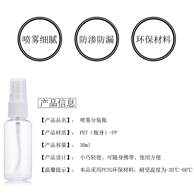 Spray bottle 30ML (colour random fit) spray bottle 50ML (colour random fit) spray bottle 100ML (colour random fit) Sub-pressure bottle 50ML (colour random fit) Sub-pressure bottle