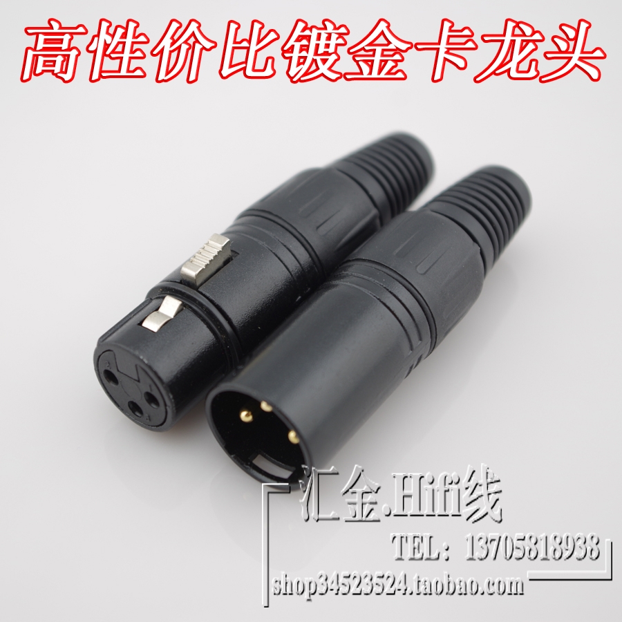 Pure copper gilded Cannon head microphone plug Canon head male and female head three-core balance Karon plug