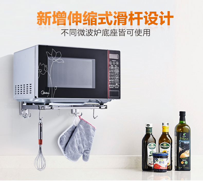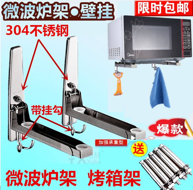 Thickened 304 stainless steel folding microwave oven rack oven rack bracket telescopic rack wall-mounted bracket