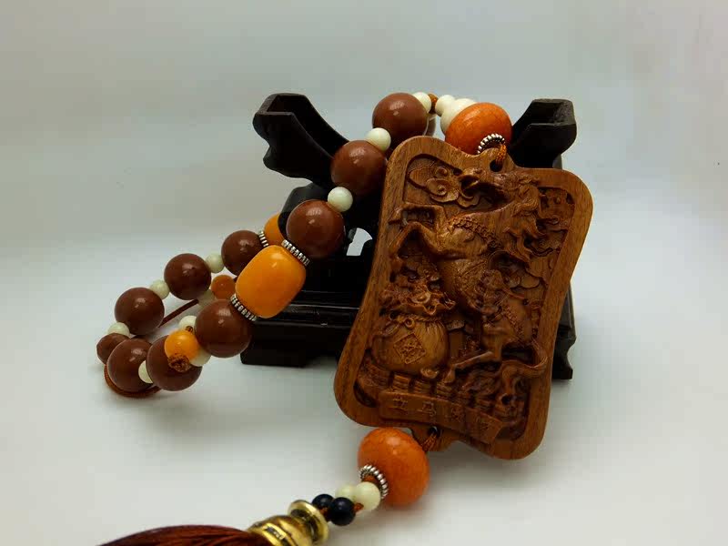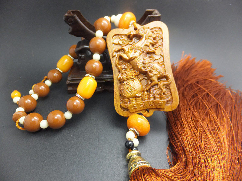 Flower Pear Wood Red Acid Buddha Pearl Branches Date Wood Tibetan name Distinctive Car Pendant (Flower Pear Wood Plus Imitation Honey Wax)