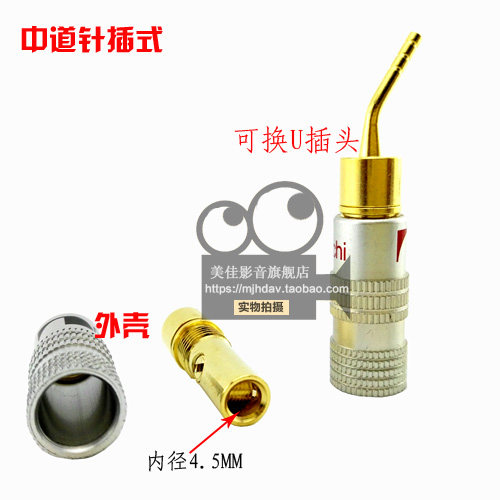 With special pure copper banana head plug self-locking terminal solder-free audio amplifier elbow 90 degree small black clip U-shaped Y