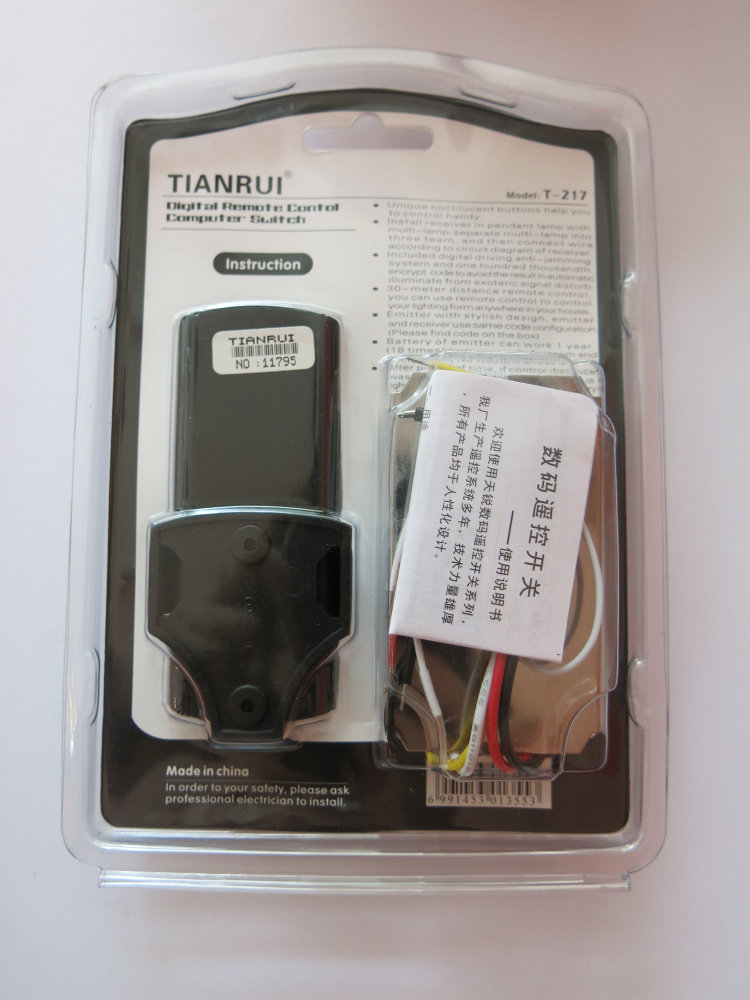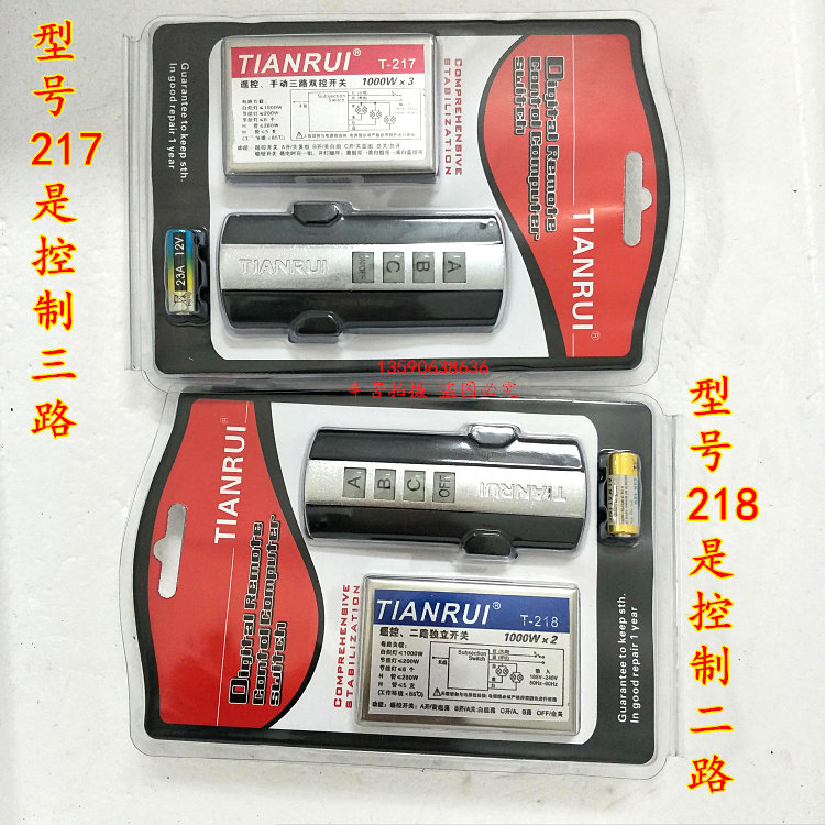 Tianrui brand digital remote control switch lamp segmenter remote control two independent switches 1000W*2