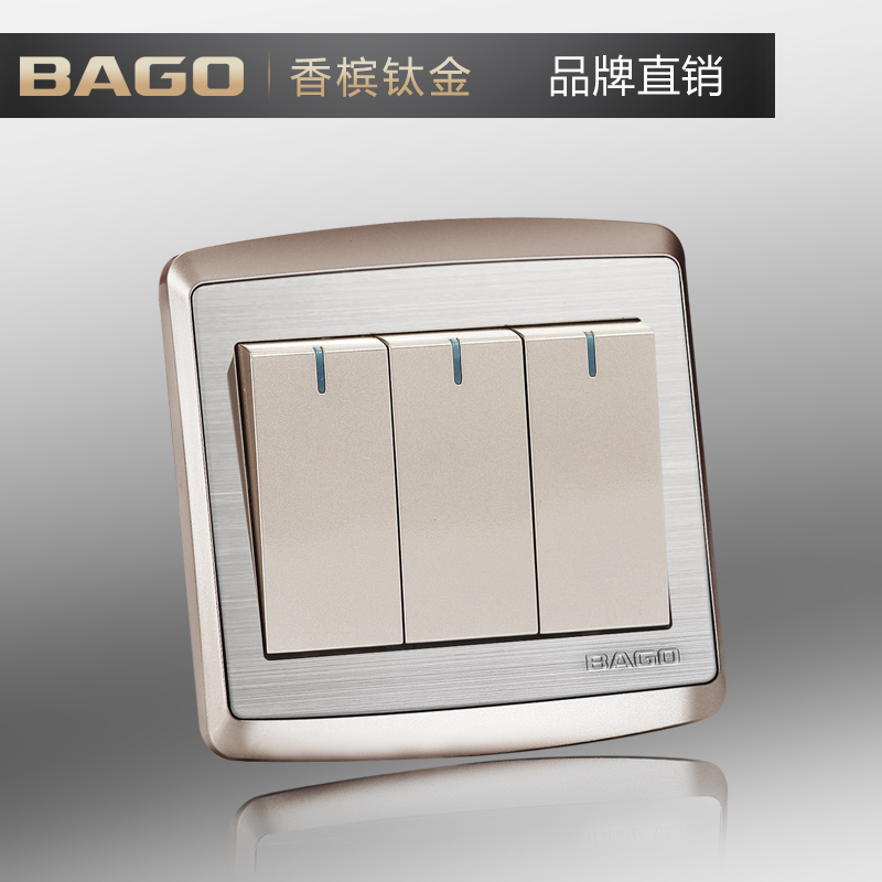BAGO Bay High 86 Champagne Gold Switch Panel Triple Switch Double Cut 3 Concealed Mount High End Switch