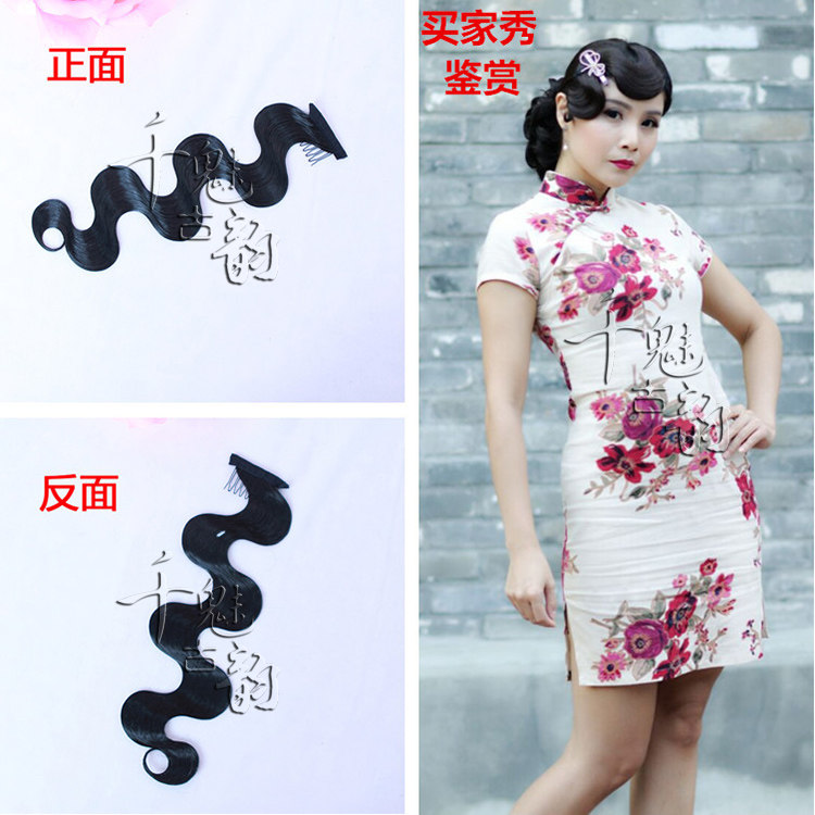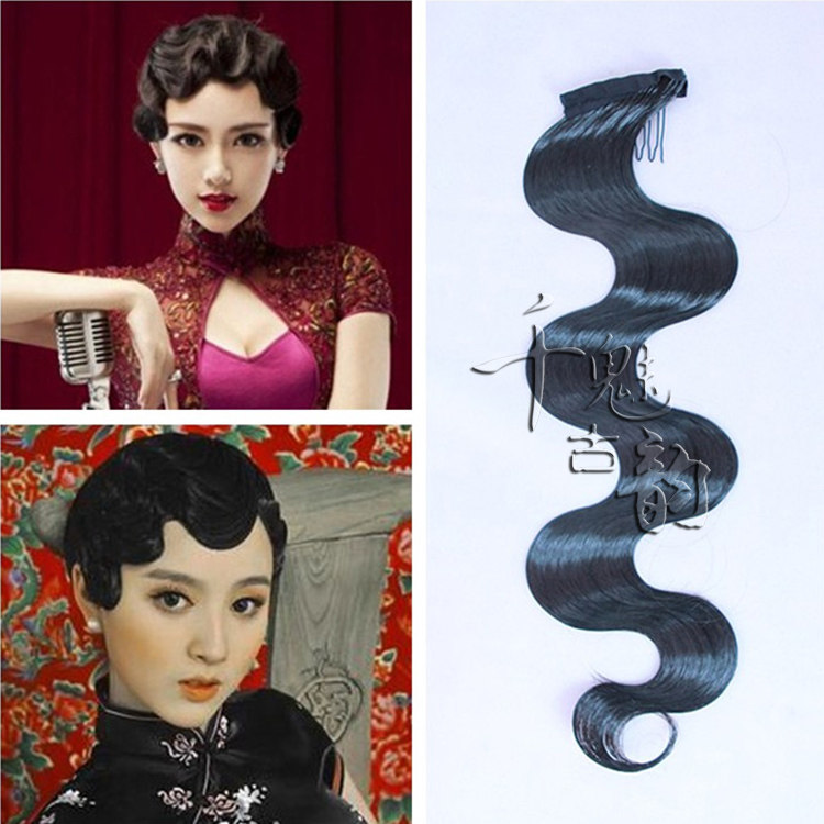 Retro elegant push corrugated ancient dress styling wig Republic Qipao Stereotypes Hard Liu Hai Great Wave Fake Liu Haiflake-Taobao