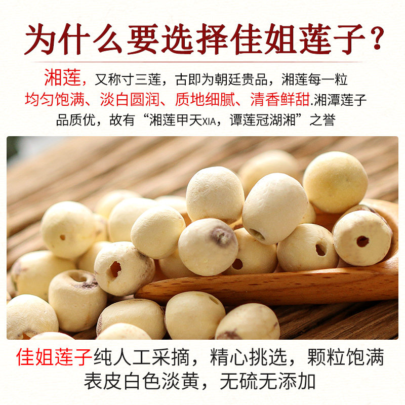 Sister-in-law Lotus Seed Dry Goods No Sulphur Natural Xianglotus Seed to Core Grinding Leather toning white lotus rice without core Xiangtan Lotus seed 220g
