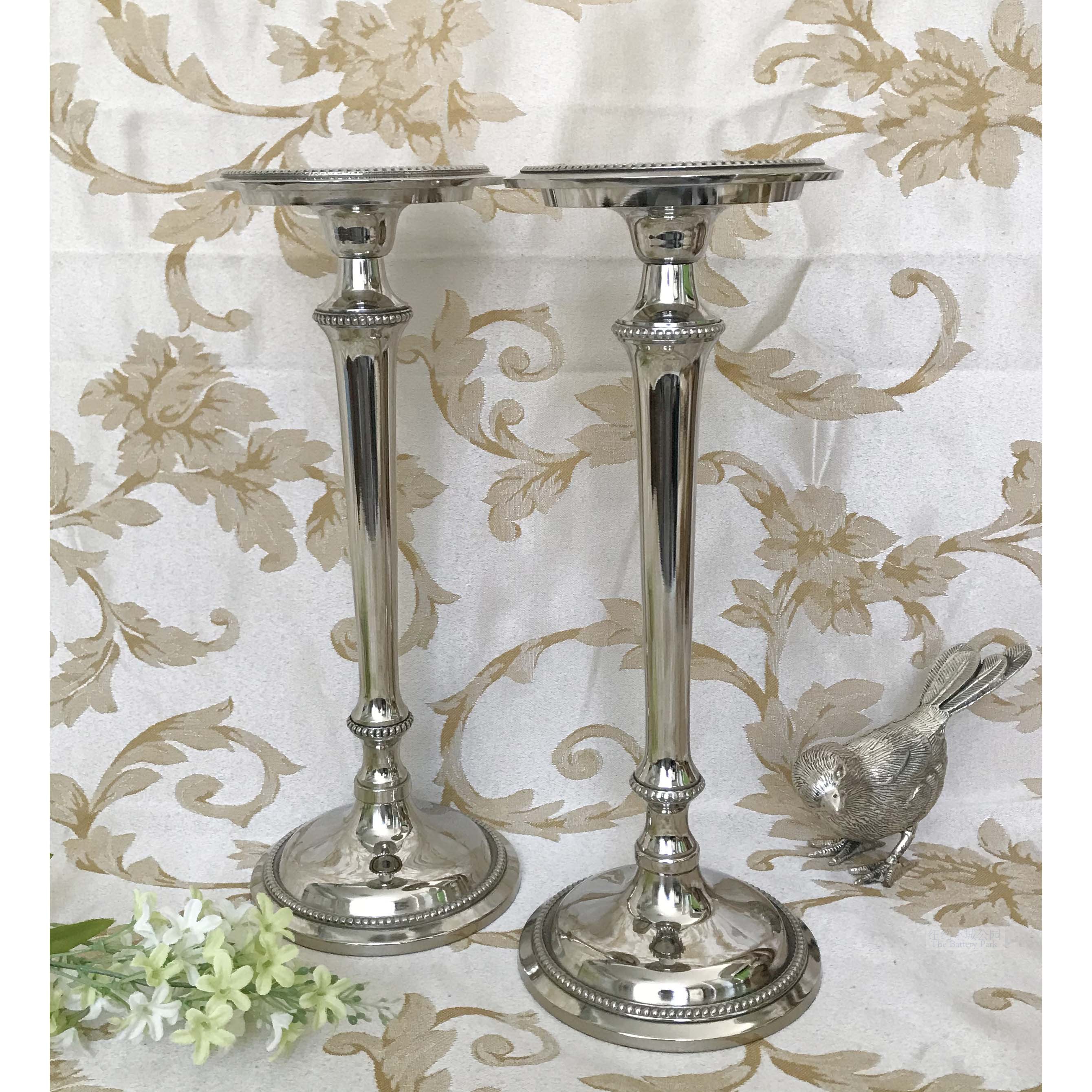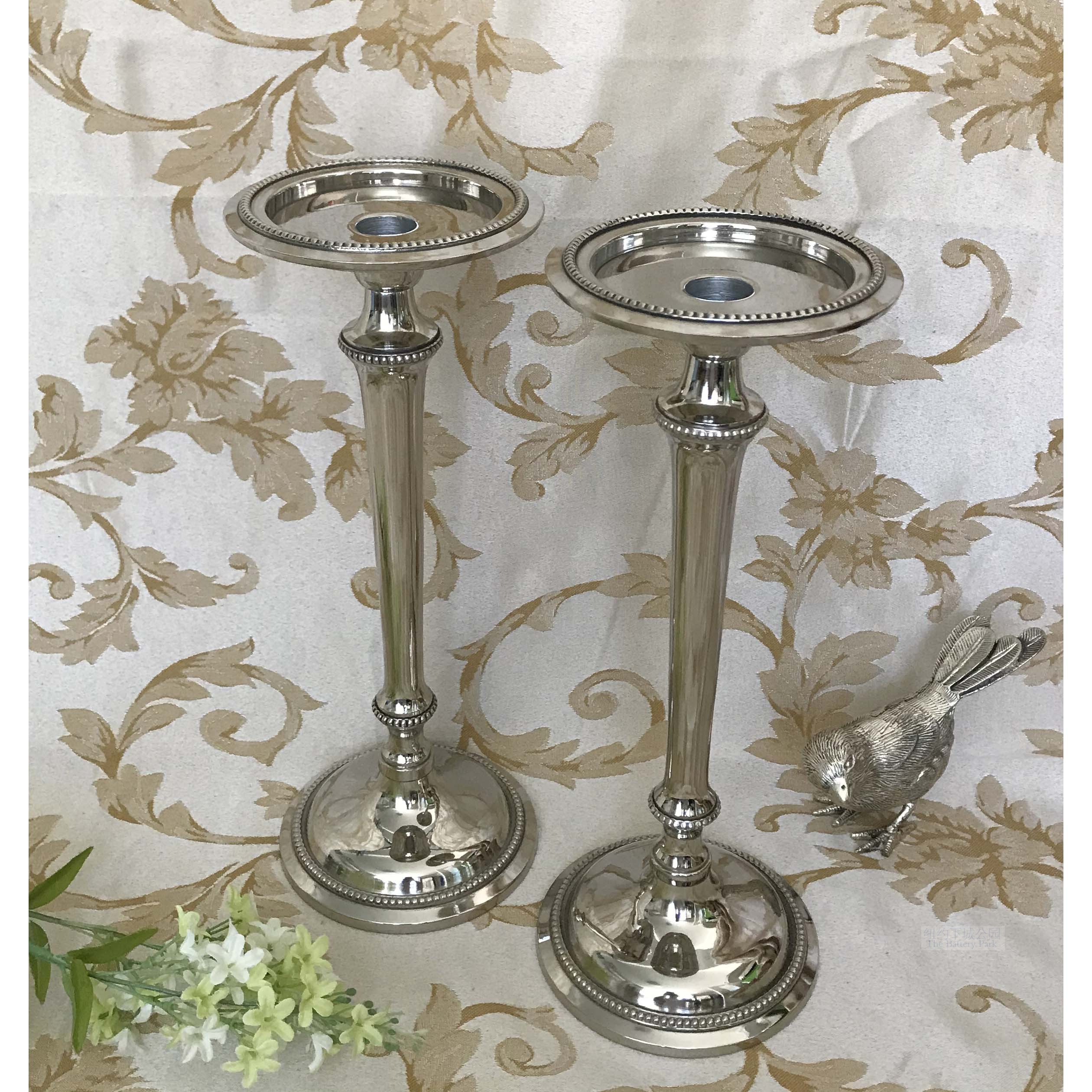 New York Lower City Park Import Crystal Ying Tick Through Neoclassical Style Bright Silver Candle Holder Candle Holder pair