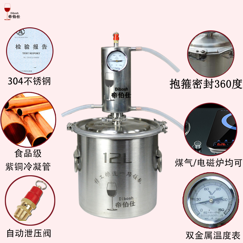 12 Liter Distiller 304 Barrel Red Copper Condensing Tower 12 Liter Distiller 304 Barrel Stainless Steel Condensing Tower 12 Liter Distiller 316 Barrel Red Copper Condensing Tower 12 Liter Distiller