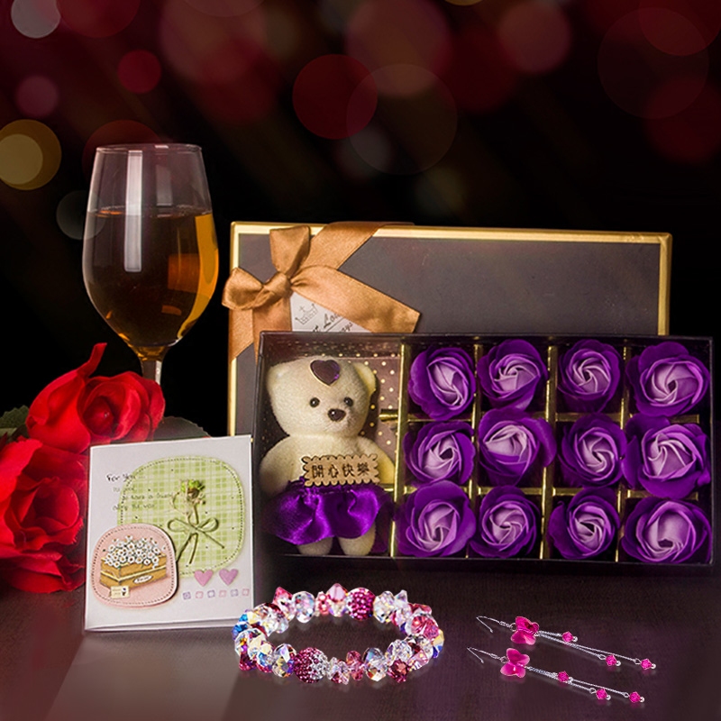 Purple pink heating gift box pink four leaf multi-drilling ball