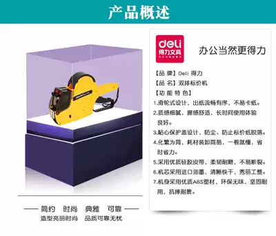 Deli 7505 double row price marking machine Supermarket commodity price tag marking machine Small manual digital adjustable price tag coding machine Label paper price marking machine Clothing store handheld price code marking machine