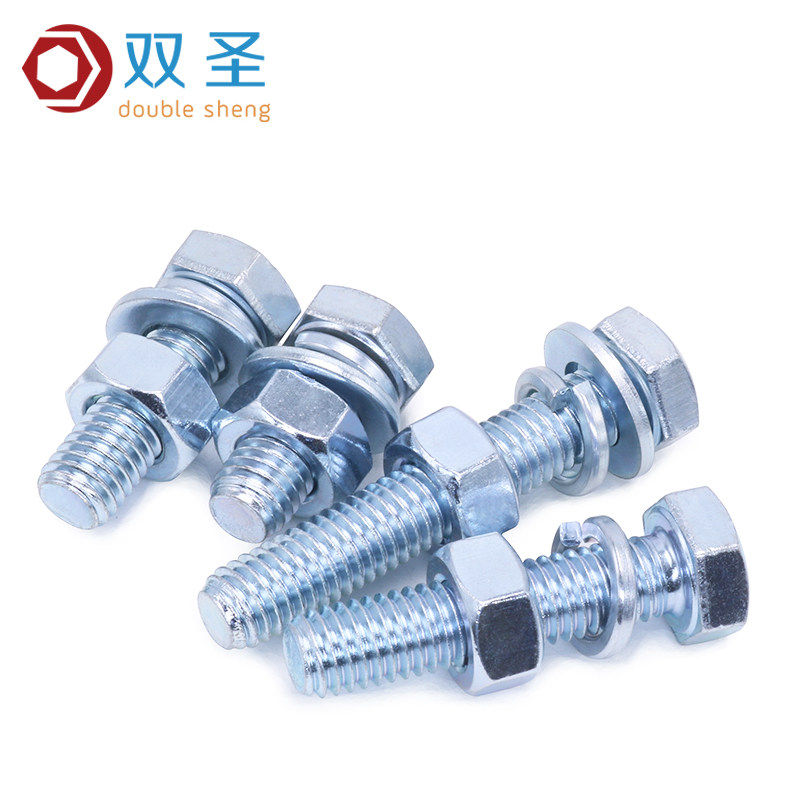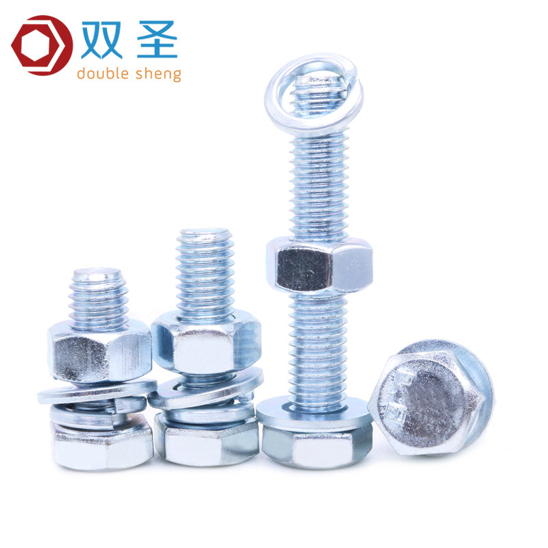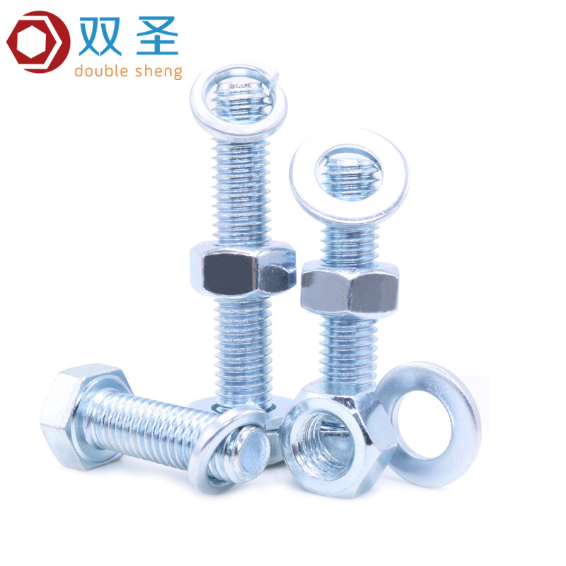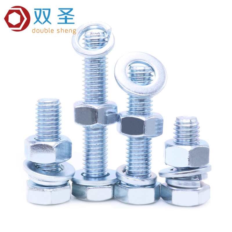 M4-M16 Blue White Zinc 8.8 Grade Hexagon Screw Rod Galvanized Flat Elastic Pad Combination Bolt Nut Set Complete