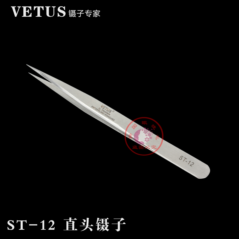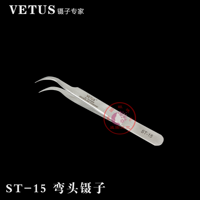 Grafting Implant Eyelash Tweezers VETUS ST Series High Precision Closed Stainless Steel Clip Straight Head Elbow