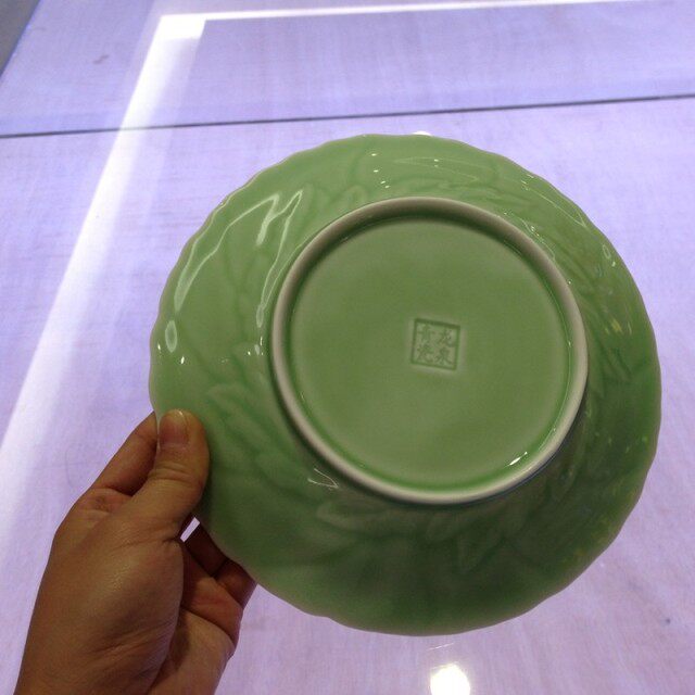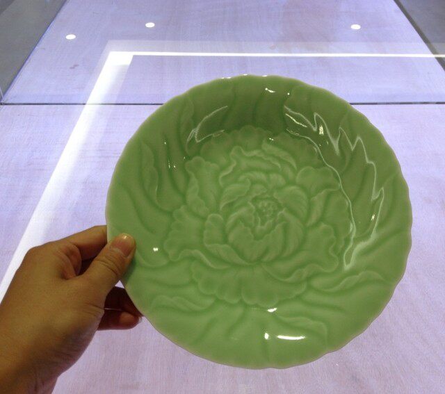 Green Porcelain Cutlery Dish Makers Direct Sales Home Hotels Ceramic Porcelain Porcelain Fashion Creative Gift Peony Plate Flat Pan