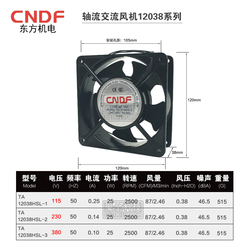 East AC axial flow blower TA-12038HSL-2 0 220V 14A 14A cabinet heat dissipation fan 110V380V