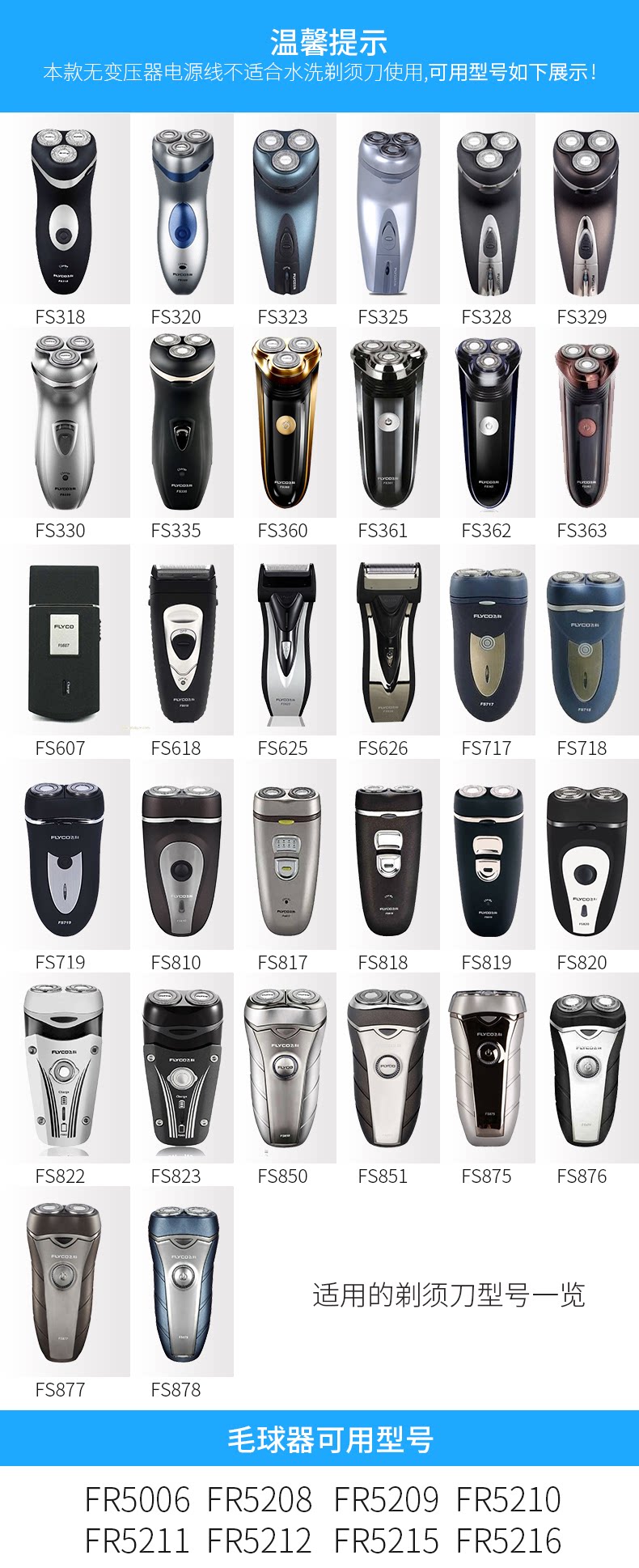 Feike original power cord accessories shave razor universal charger FS330 360 878 361 362