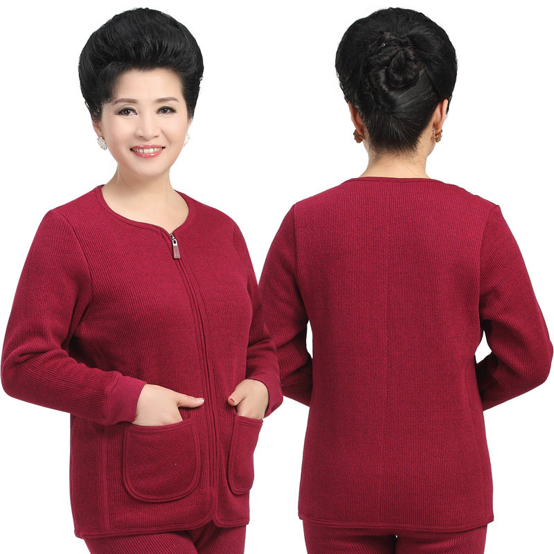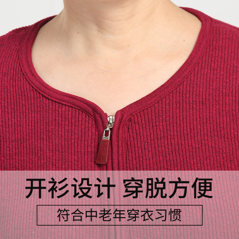 The elderly and the elderly heating clothes women's cardigan thickened and flocked winter large size cotton coat loose mom heat jacket