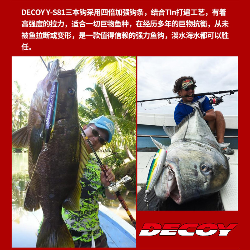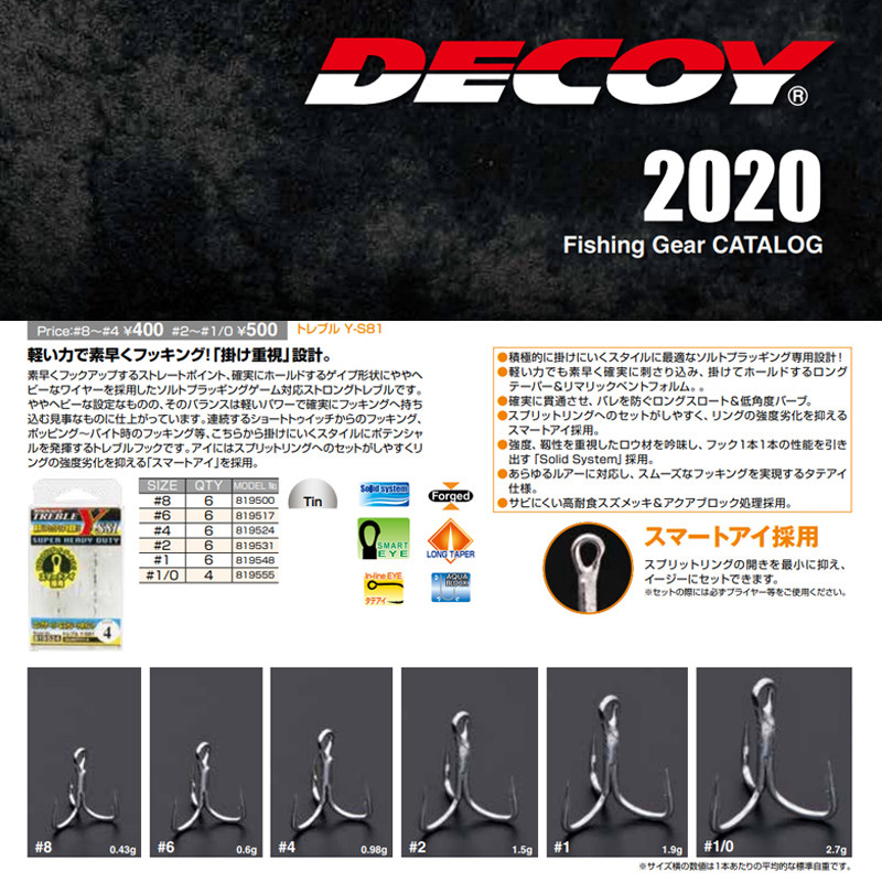 Japan DECOY YS81 road subthree hooks quadrupled to strengthen flat beating hard bait mino fish hook teething special special