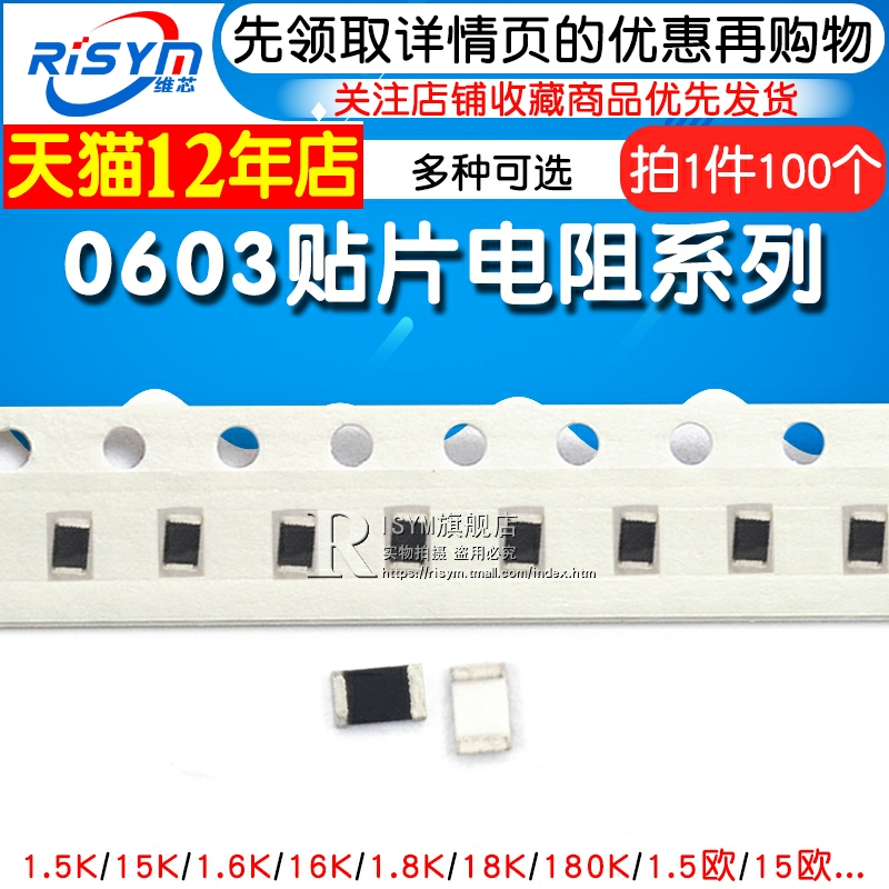 0603 patch resistance 1% 1 5K 15R 150K 1 6Ω 16ohm 160 euros 1 8M 18E 180