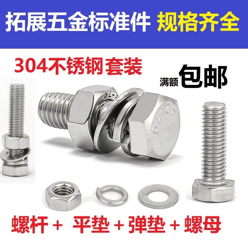 M16 304 stainless steel outer hexagonal screw nut suit large fully lengthened bolt flat play cushion set 25 -200