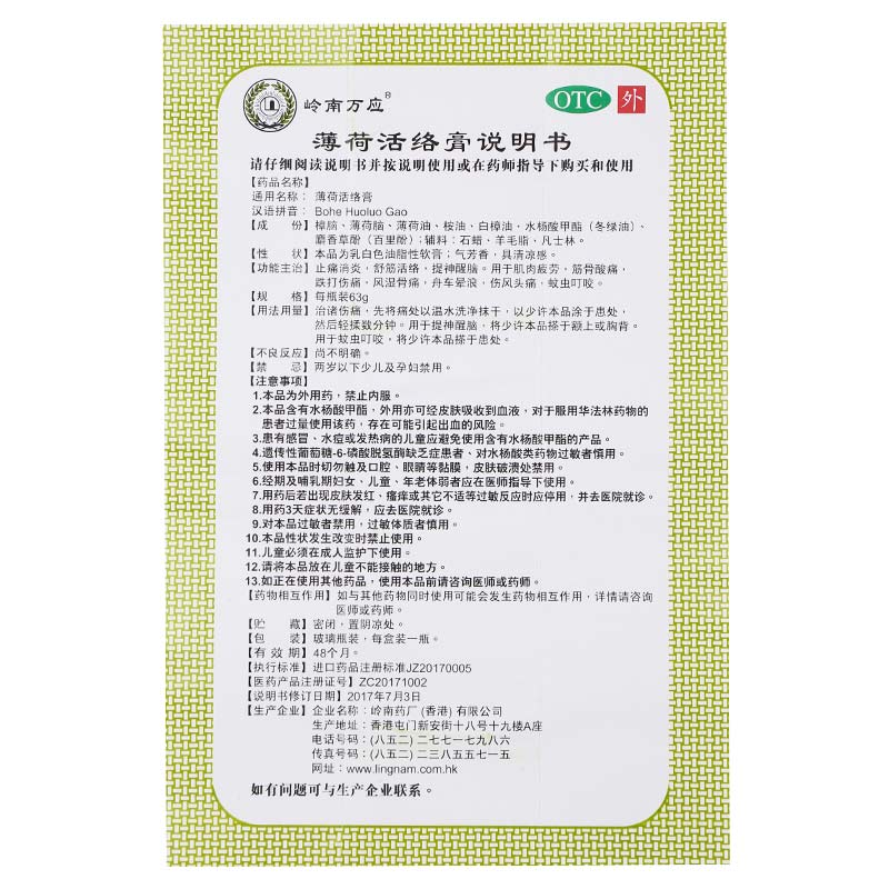 Enjoy cotton swab) Lingnan Wanying Mint Activating Lotion 63g Anti-inflammatory Pain Relief Cream Cold, Headache, Rheumatism, Bone Pain