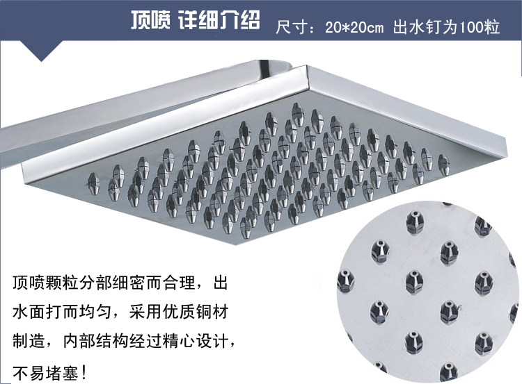 SQUARE PIPE FULL COPPER SHOWER SHOWER NOZZLE COPPER NAIL REMOVABLE WASH FLOWER SPRINKLE SQUARE STAINLESS STEEL FLOWER SPRINKLED LOTUS HEAD THICKENED
