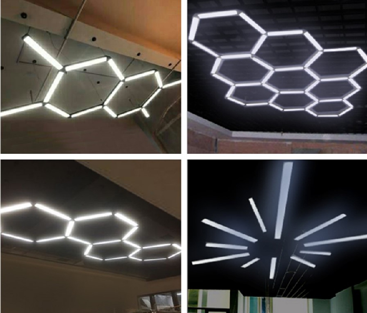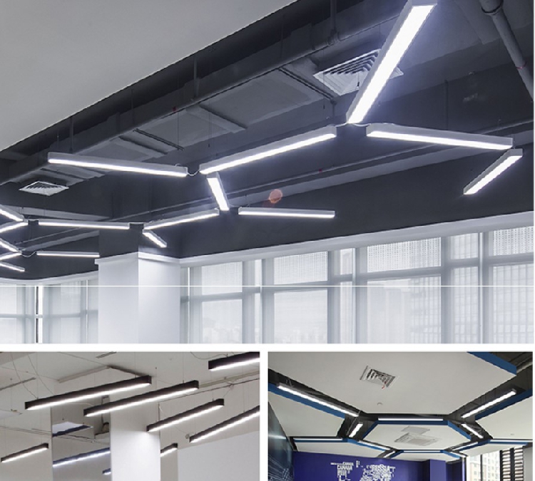 Office chandelier LED strip light splicing aluminum square pass light shopping mall supermarket gym office modeling light