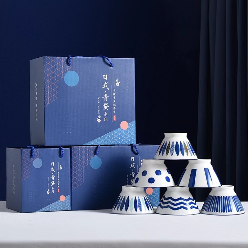 Japan-style Colorful High Foot Ceramic Bowls Chopstick Suit Company Activities Wedding Back Gift gift Custom Inprint logo