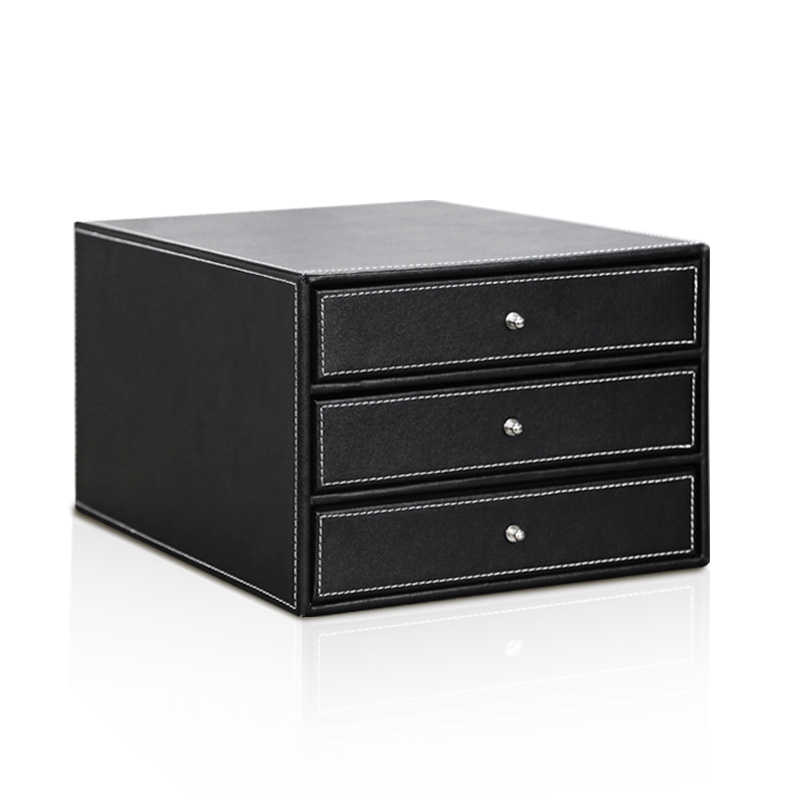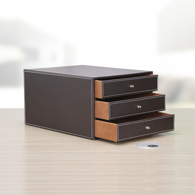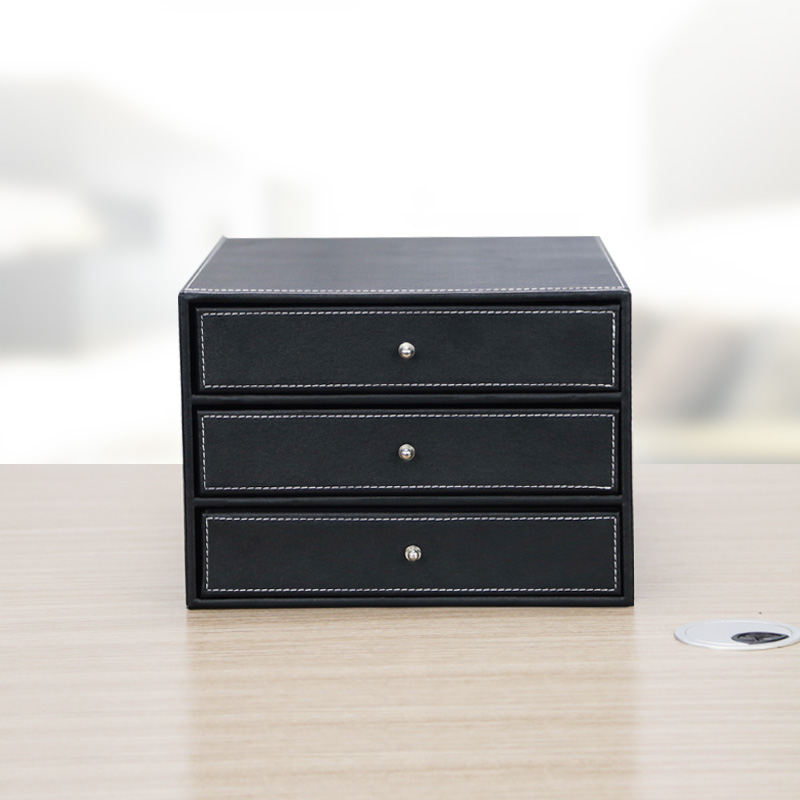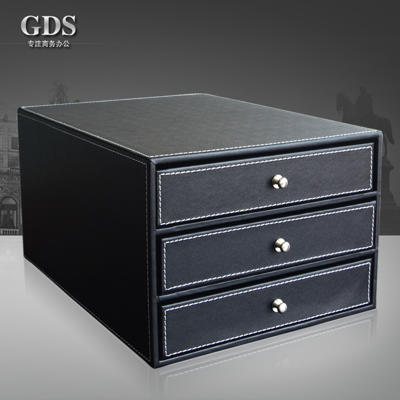 High-grade leather desk cabinet three-layer drawer A4 file storage information box Business office supplies special offer