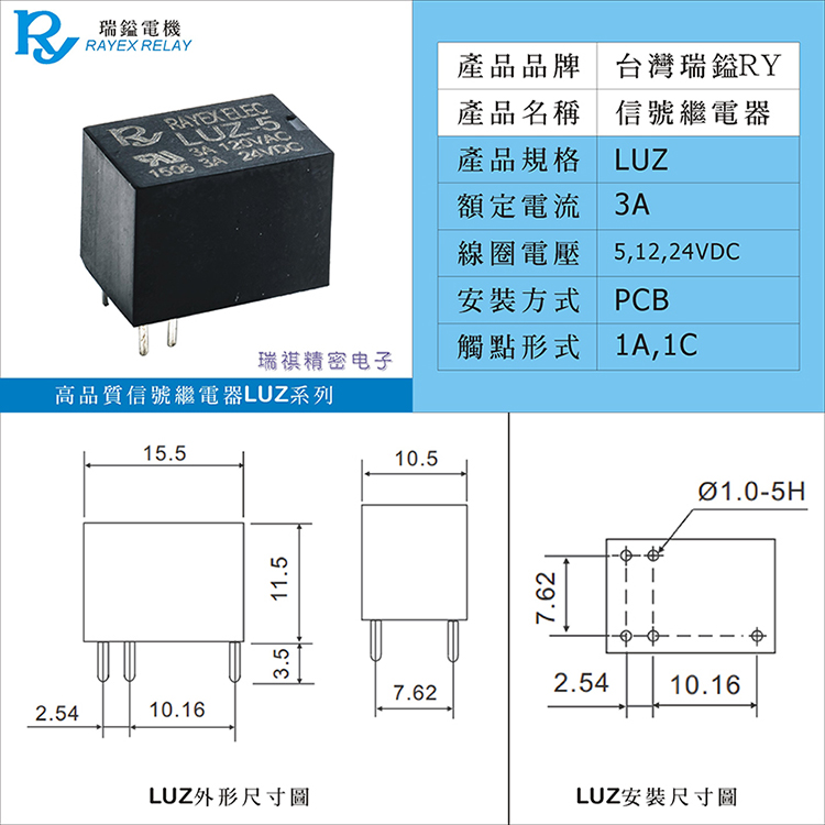 LUZ-351224 Taiwan brand Rayon Electric Motor RAYEX high-quality micro-PCB relay