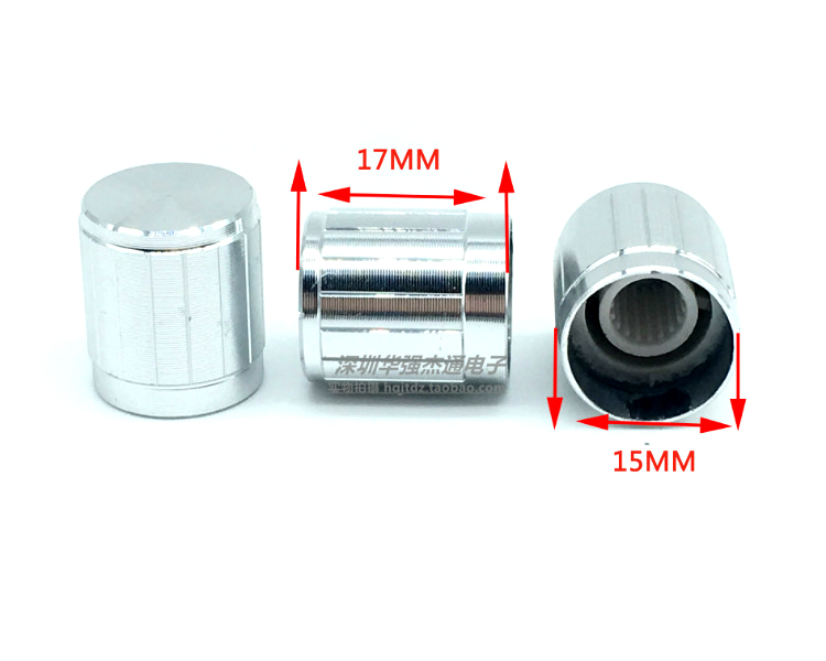 High-end aluminum alloy silver color potentiometer encoder knob 15MM* 17MM flower shaft half-axle hole inner hole 6MM