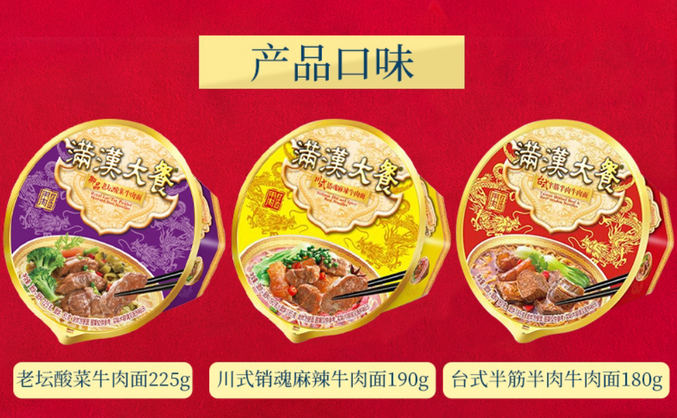 Taiwan produces a unified Manhan feast full-table instant noodles full box of 12 bowls of beef instant noodles Desktop half-tendon and half-meat
